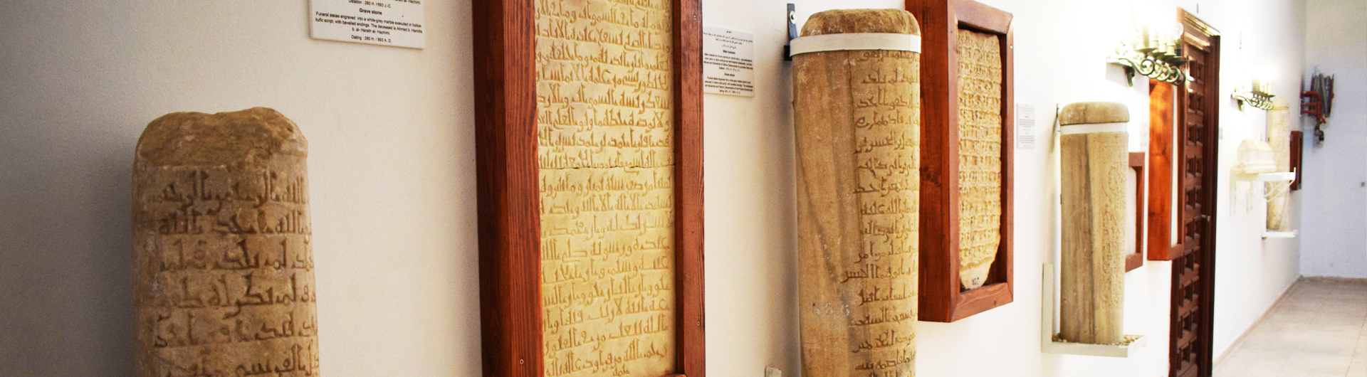 قاعة النقائش : تحتوي على بعض النماذج من النقائش القيروانية التخلدية وشواهد القبور من مقبرة قريش ومزولتين واحدة فاطمية والأخرى عثمانية. ويُعدّ الشريط الرخامي المكتوب بخط كوفي مورّق ومحزز والذي يعبر عن أوج توازن الكتابة العربية وجمالها، من أشهر القطع المعروضة.