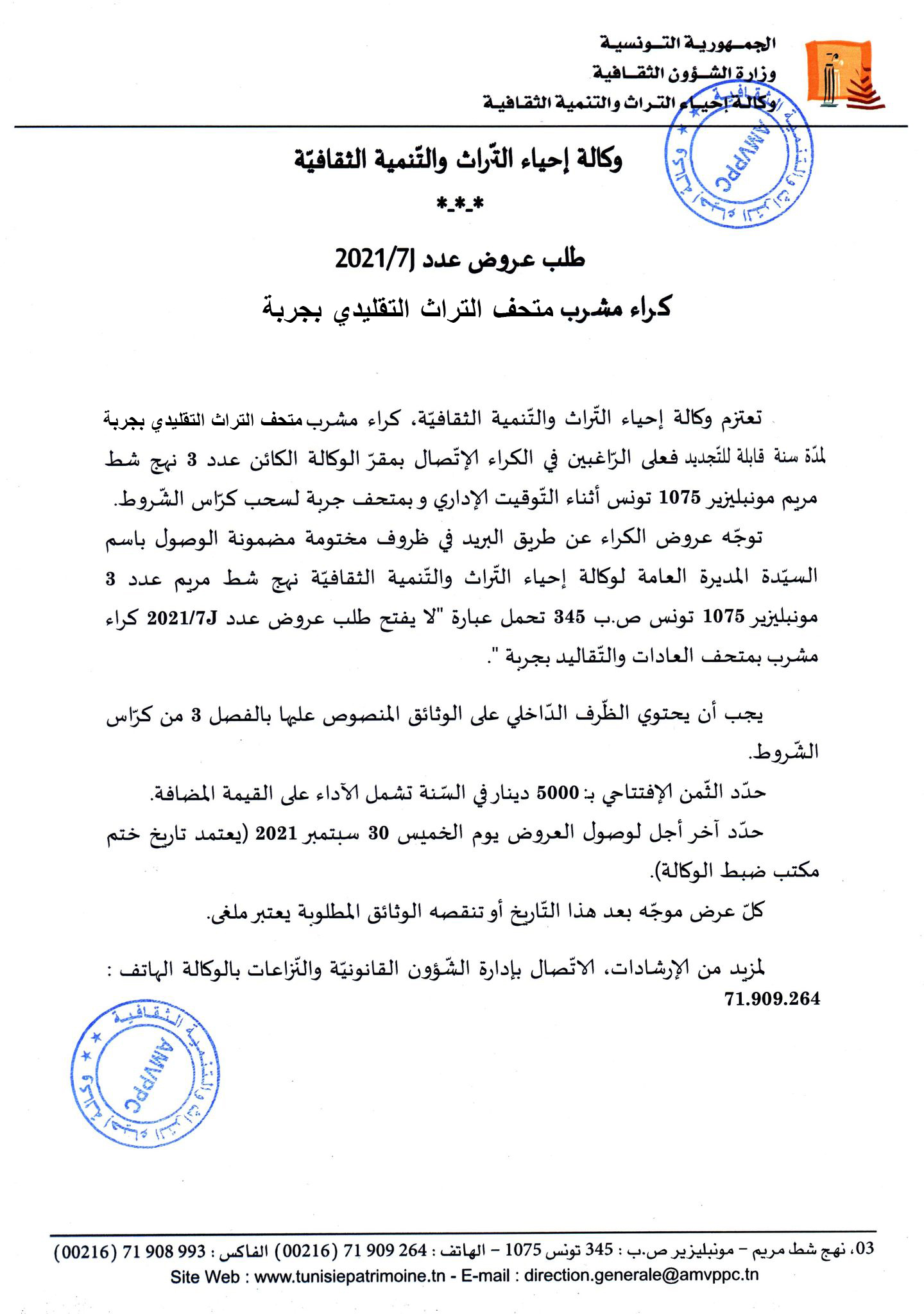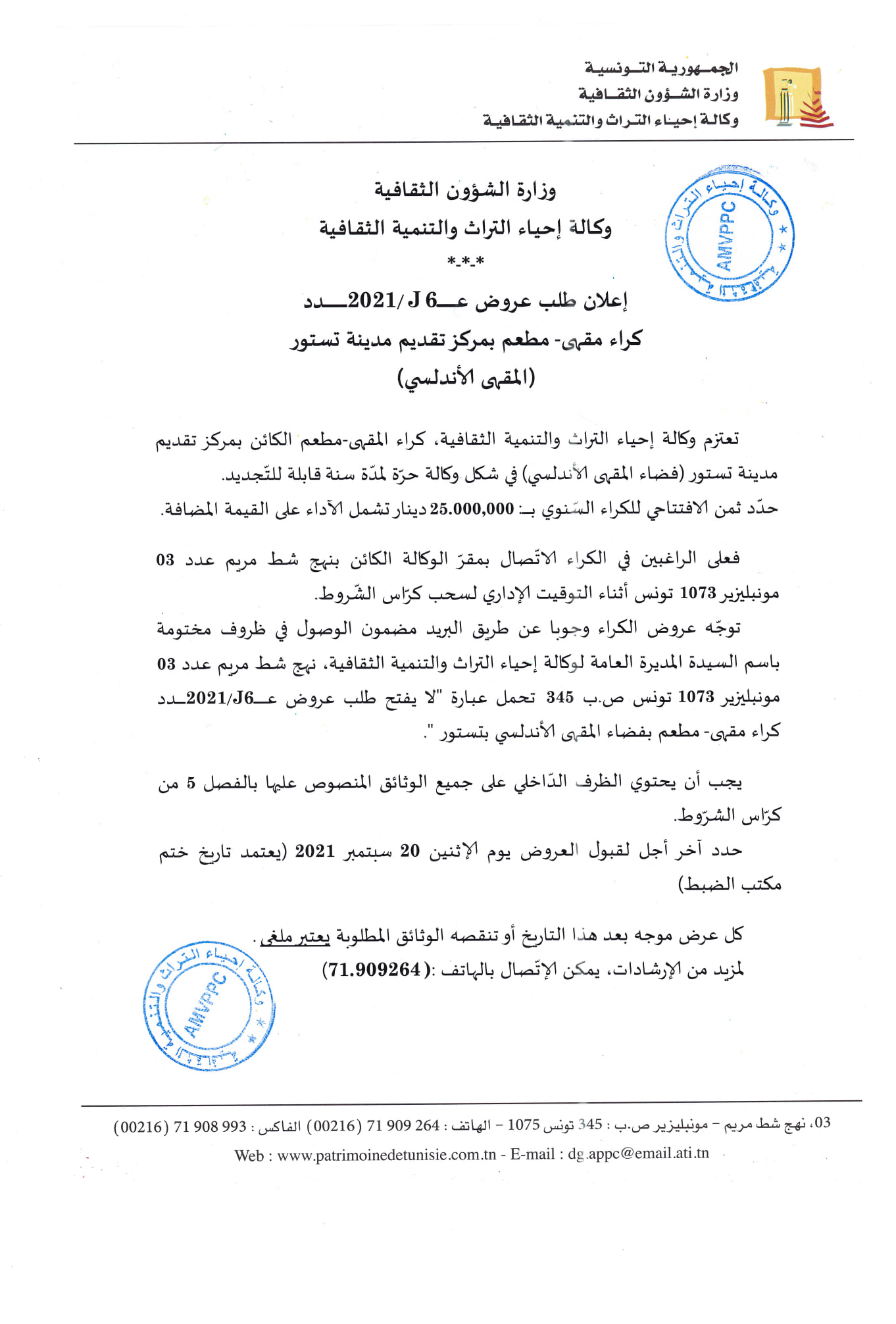 تذكير: آخر أجل لقبول العروض يوم الإثنين 20 سبتمبر 2021