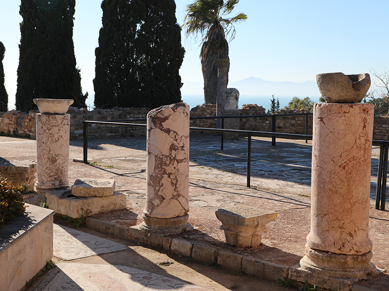 Parmi les quatre collines qui marquaient la topographie de Carthage (Byrsa, Junon, l’Odéon et Sainte Monique), celle de l’Odéon abrite le parc dit des villas romaines en référence à ses somptueuses maisons aristocratiques d’époque romaine ; il s’agit notamment des maisons de Cryptoportique, de Bassilica, de la Volière, de la Rotonde et des Lions. Ce quartier est organisé selon le divisant en îlots urbains de 141 sur 35 m, et succédant à une nécropole punique d’époque hellénistique (IIIe-IIe siècles A.C.).
