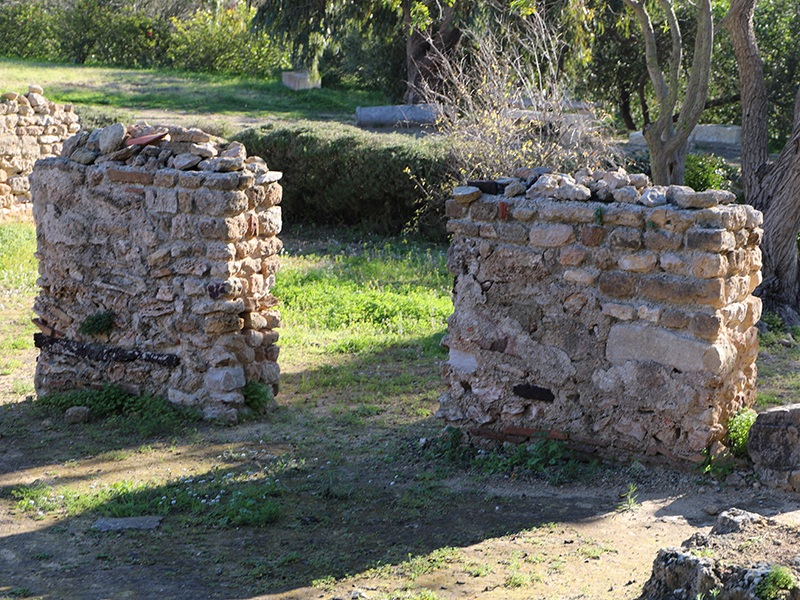 A l’extrémité ouest du quartier, Tertullien nous raconte, et l’archéologie le confirme, la construction d’un odéon ayant le même axe nord-sud que le théâtre sur les vestiges de sépultures plus anciennes. C’est le monument qui accueillait les concerts musicaux et les jeux pythiques (concours littéraire) pendant lesquels l’empereur d’origine africaine Septime Sévère accordait le pythicus agon.