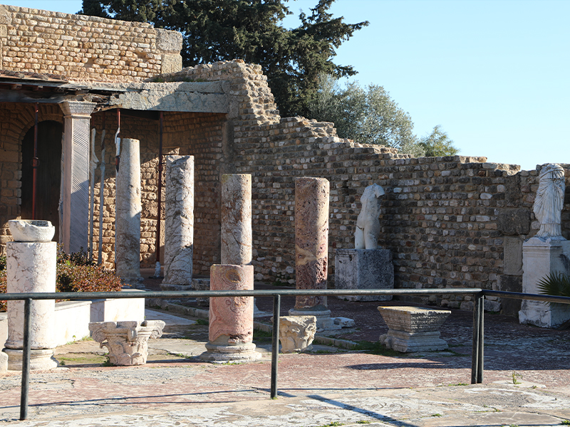 Les premiers monuments d’époque romaine, datant du Ier siècle, étaient apprêtés à des habitations modestes et à des activités artisanales telles que la production du garum. Le quartier n’a reçu les éléments de sa configuration actuelle qu’à partir de la période antonino- sévérienne, au IIe siècle. Cette nouvelle conception du tissu urbain a donné au quartier son aspect résidentiel aristocratique avec l’aménagement d’un nymphaeum, d’un odéon et de plusieurs villas somptueuses richement décorées par des pavements mosaïqués et des revêtements en marbre. L’un des pavements originaux, remarquable par son caractère unique, est celui représentant une peau de tigresse polychrome jetée sur un fond blanc.